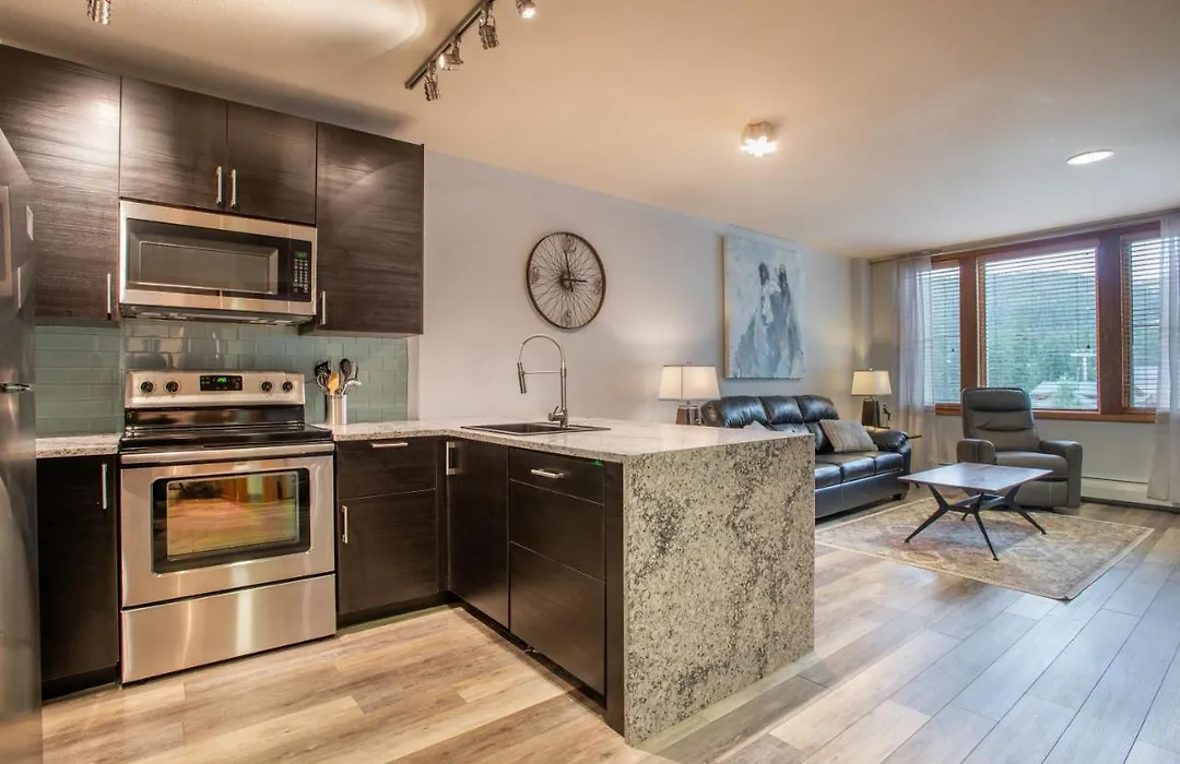 Die Apartments verfügt über einen Wohnbereich und eine Sitzecke und Annehmlichkeiten wie eine Waschmaschine. Die Beautiful Zephyr Mountain Lodge Condo With Wine Coole! - Close To Gondola! Condo bietet außerdem 1 Bad. Außerdem gibt es einen Haartrockner und Handtücher.